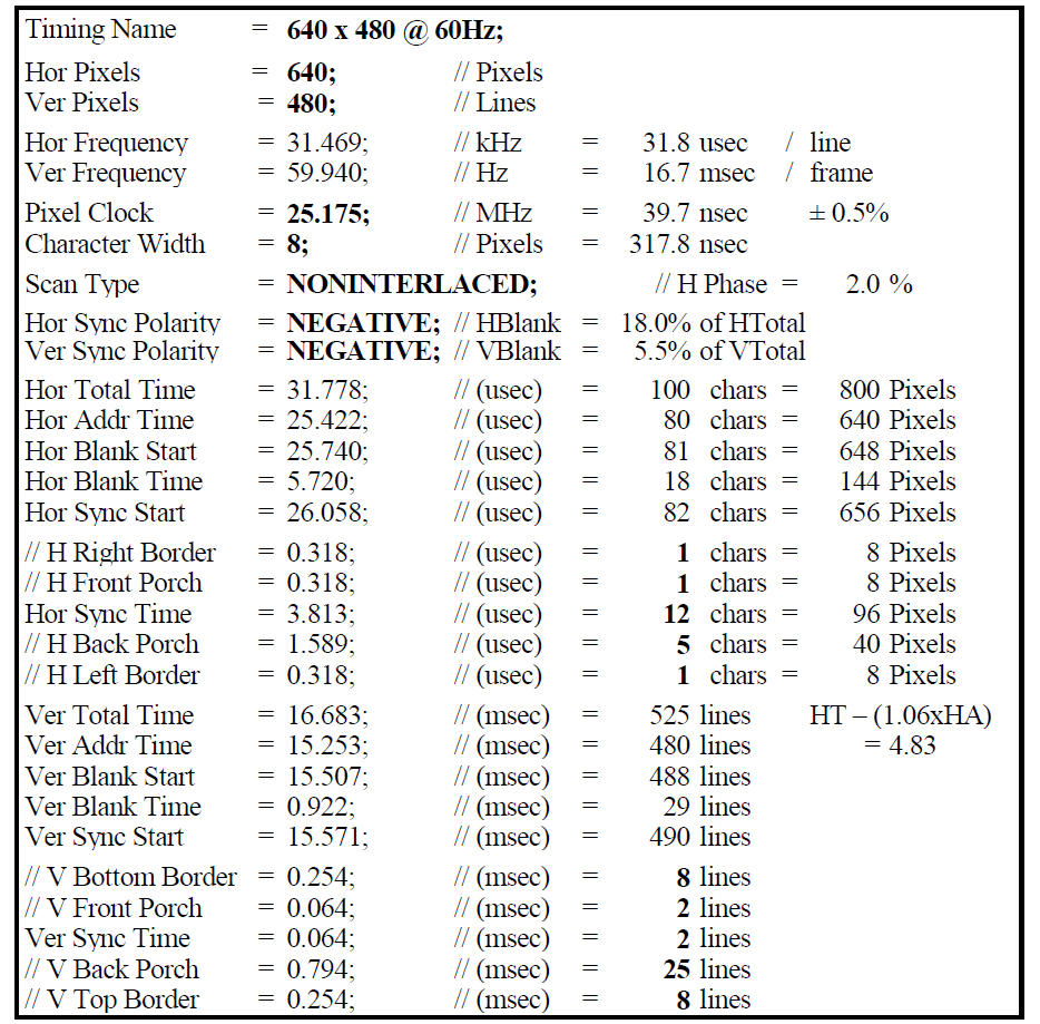 640x480@60Hz?时序参数