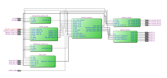 //主控模块 module?zhukong( input?clk_50M,//50M input?rst_button,//复位 //开关 input?Selection_of_03,//选3元商品 input?Selection_of_04,//选4元商品 input?Selection_of_05,//选5元商品 input?Selection_of_02,//选2元商品 //按键 input?confirm_button,//确认购买 input?Give_change_timeover,//不买退钱 output?[3:0]?state_out, input?wait_second_time, input?[7:0]?total_need_money,//选中商品价钱 input?[7:0]?total_throw_inmoney,//投入总钱币 output?[7:0]?total_throw_inmoney_out,//投入总钱币 output?[7:0]?total_need_money_out,//选中商品价钱 output?[7:0]?total_refund_money_out//找零金额 ); parameter?state_0=4'd0; parameter?state_1=4'd1;//选择 parameter?state_2=4'd2;// parameter?state_3=4'd3;// parameter?state_4=4'd4;//找零时间4秒 parameter?state_5=4'd5;//找零20元 parameter?state_6=4'd6;//找零15元 parameter?state_7=4'd7;//找零10元 parameter?state_8=4'd8;//找零5元 parameter?state_9=4'd9;//结束
