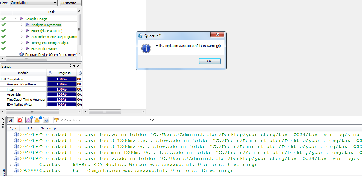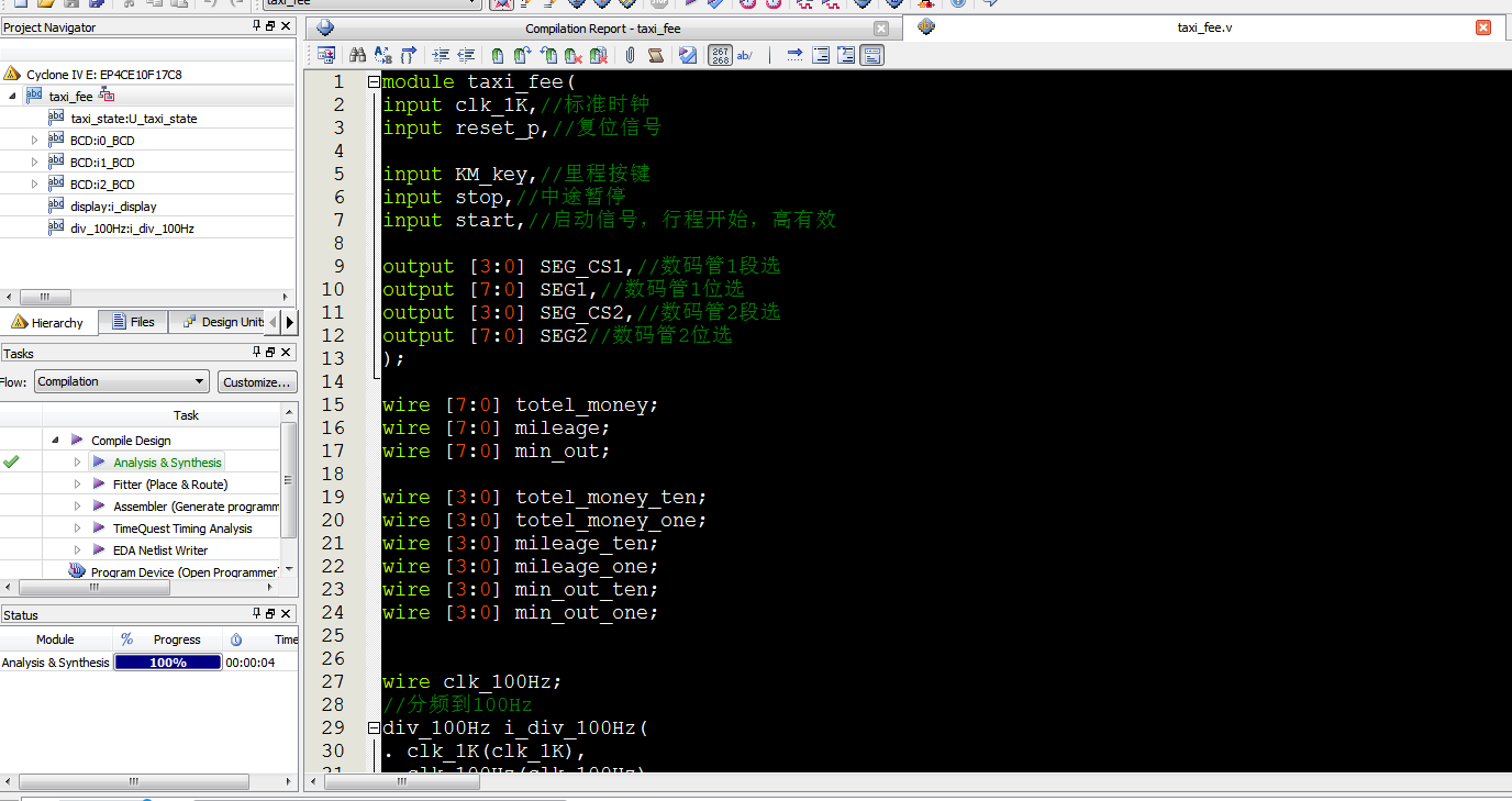 名称:出租车模拟计价器设计Verilog代码Quartus仿真