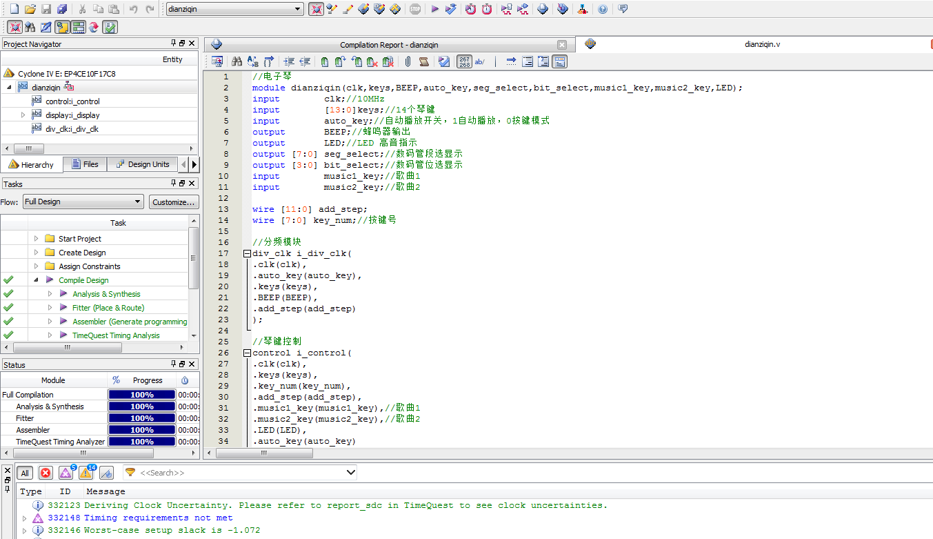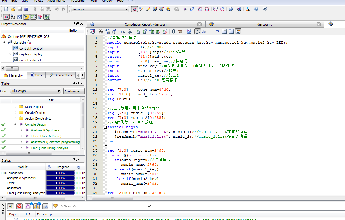 名称:乐曲硬件演奏电路设计Verilog代码Quartus? 远程云端平台