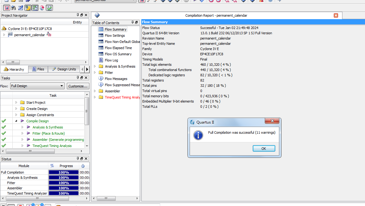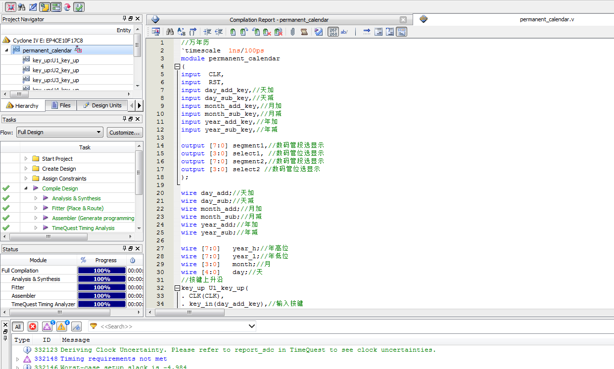 名称:基于FPGA的电子日历的设计Verilog代码Quartus? 远程云端平台
