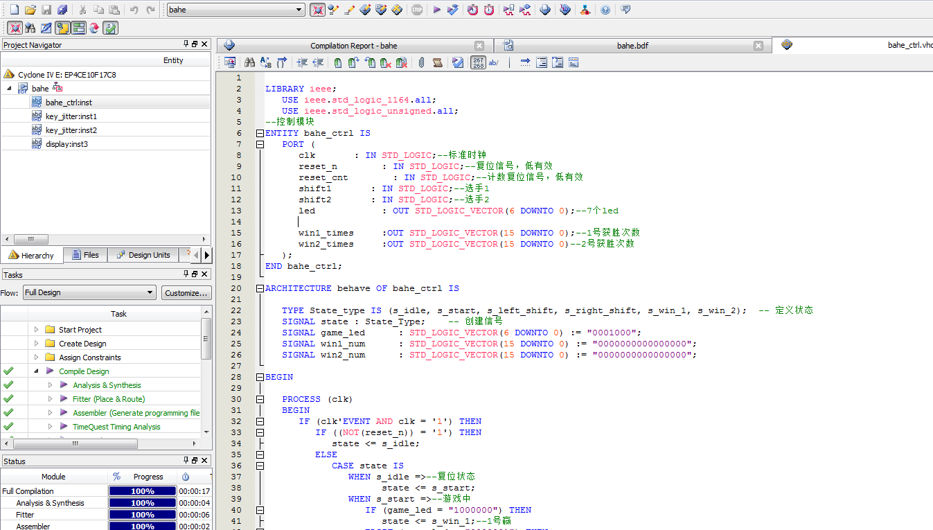 拔河游戏电路远程平台验证设计VHDL代码Quartus 远程云端平台