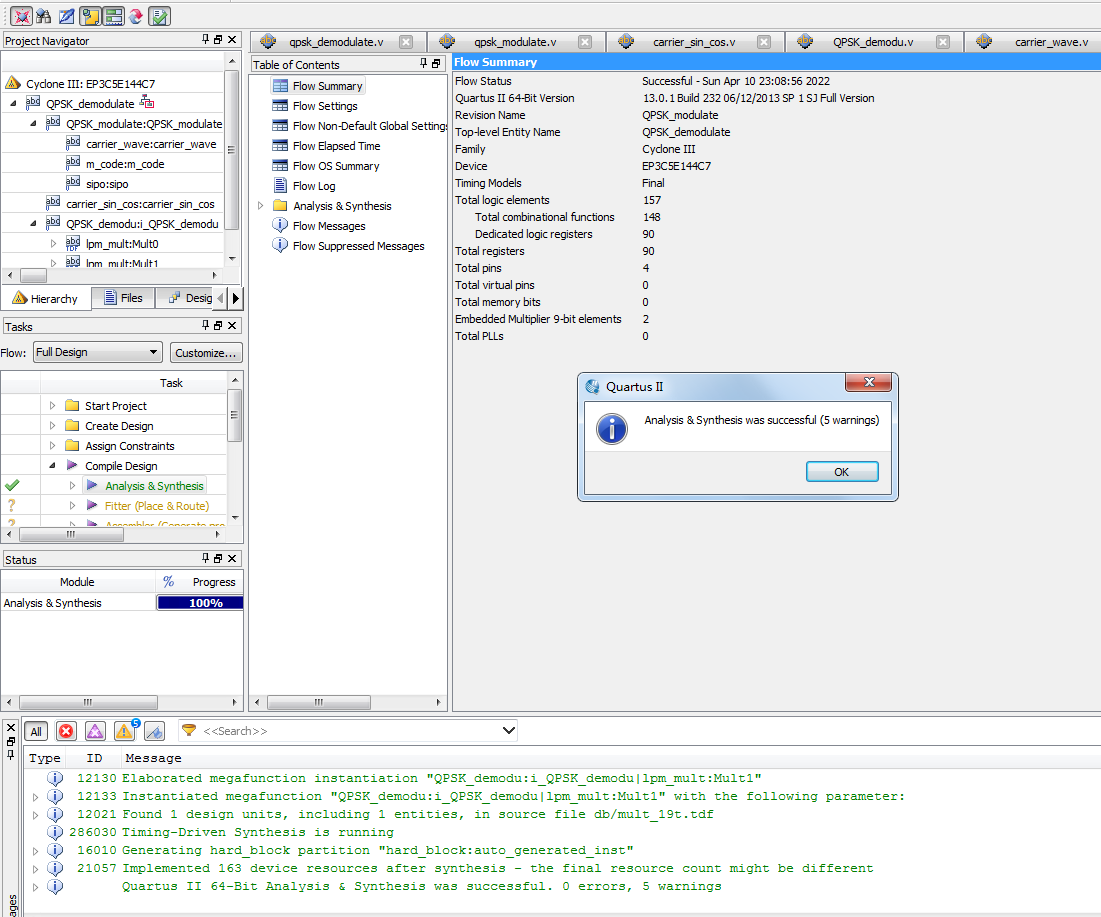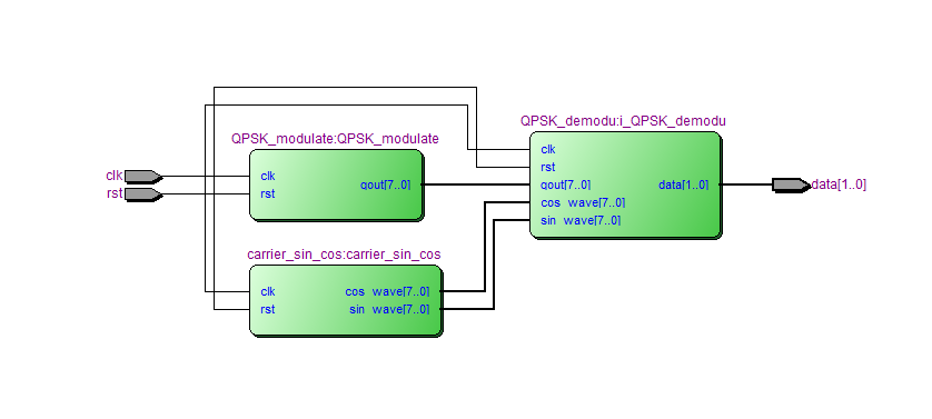 名称:QPSK调制解调设计Verilog代码Quartus仿真
