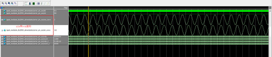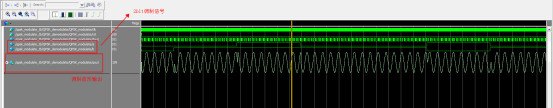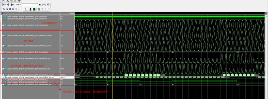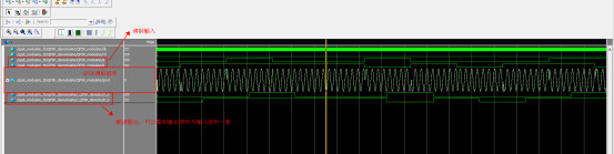 //QPSK解调模块 module?QPSK_demodu( ????input?clk, ????input?rst, ?input?[7:0]?qout,//调制波 ?input?[7:0]?cos_wave,//本地载波 ?input?[7:0]?sin_wave,//本地载波? ????output?[1:0]?data//解调输出 ); wire?[16:0]?cos_mul; wire?[16:0]?sin_mul; assign?cos_mul=cos_wave*qout;//调制波形与本地载波相乘 assign?sin_mul=sin_wave*qout;//调制波形与本地载波相乘 reg?[5:0]filter_cos_cnt=0;//32 reg?[5:0]filter_sin_cnt=0;//32 reg?demodulate_a=0; reg?demodulate_b=0; //采用计数器滤波,检测到cos_mul[15]?=1?后计数到25 always?@(posedge?clk) ??begin ????if(rst) filter_cos_cnt<=6'd0; ?else ?if(cos_mul[15]==1)? filter_cos_cnt<=6'd1; ????else? ???if(filter_cos_cnt==6'd0) filter_cos_cnt<=6'd0; else if(filter_cos_cnt>=6'd25) filter_cos_cnt<=6'd0; else? filter_cos_cnt<=filter_cos_cnt+6'd1; ??end always?@(posedge?clk) begin ??if(filter_cos_cnt==6'd0) demodulate_a<=0;//滤波输出解调的a路信号 ??else ??????demodulate_a<=1;//滤波输出解调的a路信号 end