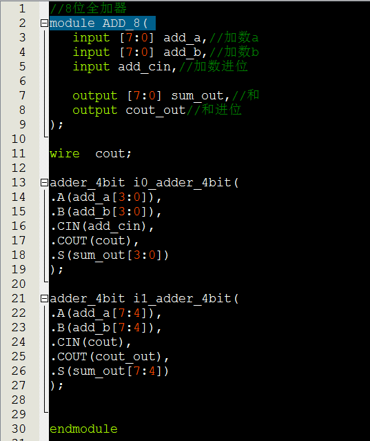 先设计1位全加器、2位全加器、8位全加器