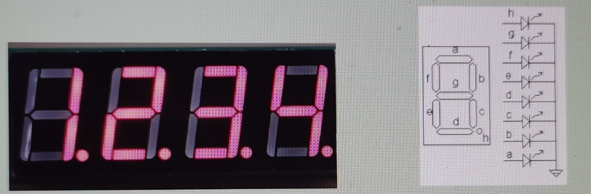 共使用4个8段数码管,如图上图所示。设从左到右为1234位。显示规则如下: