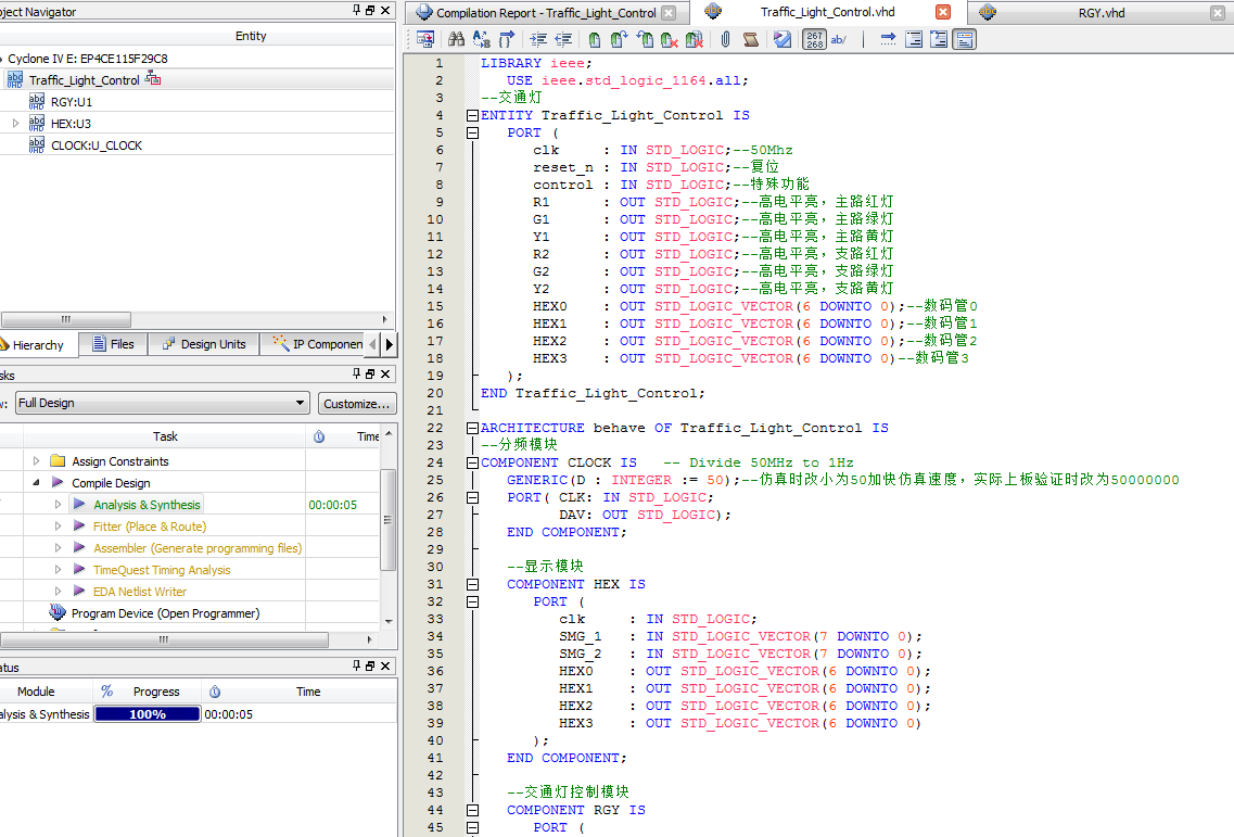 多功能交通灯控制系统设计VHDL代码Quartus DE2-115开发板