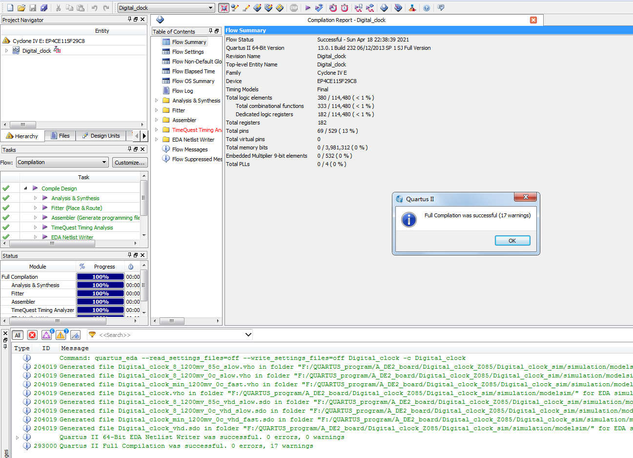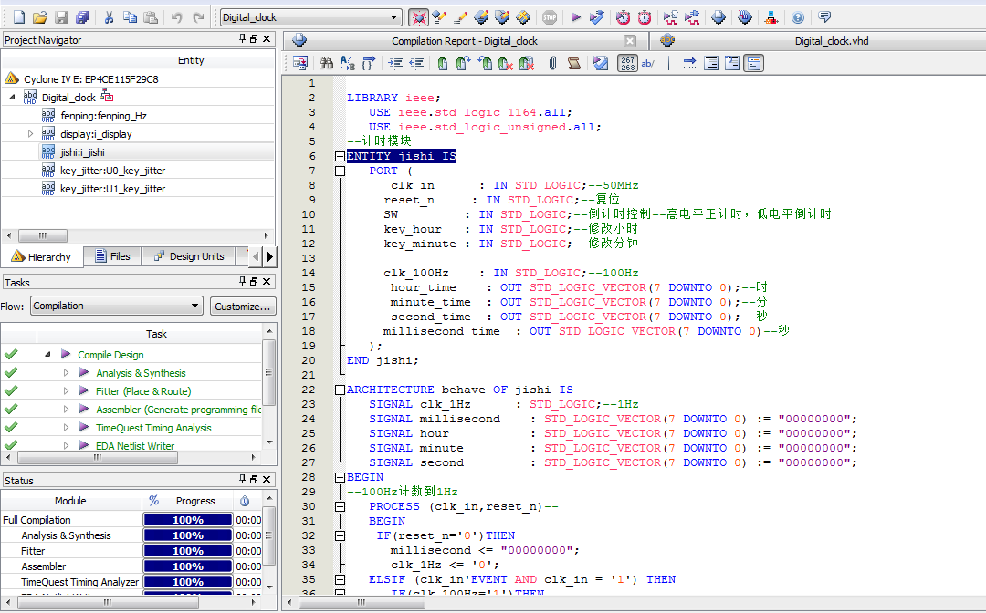 名称:数字时钟设计VHDL代码Quartus? DE2-115开发板
