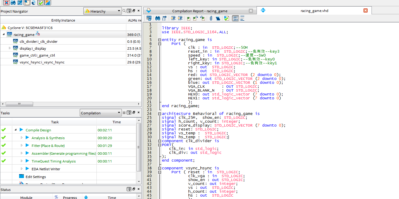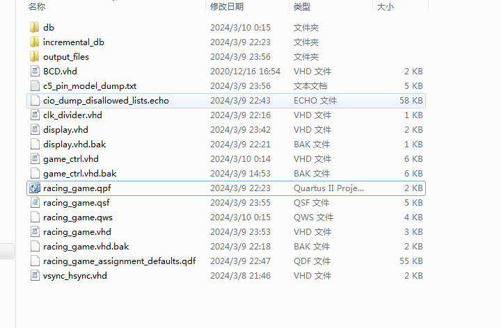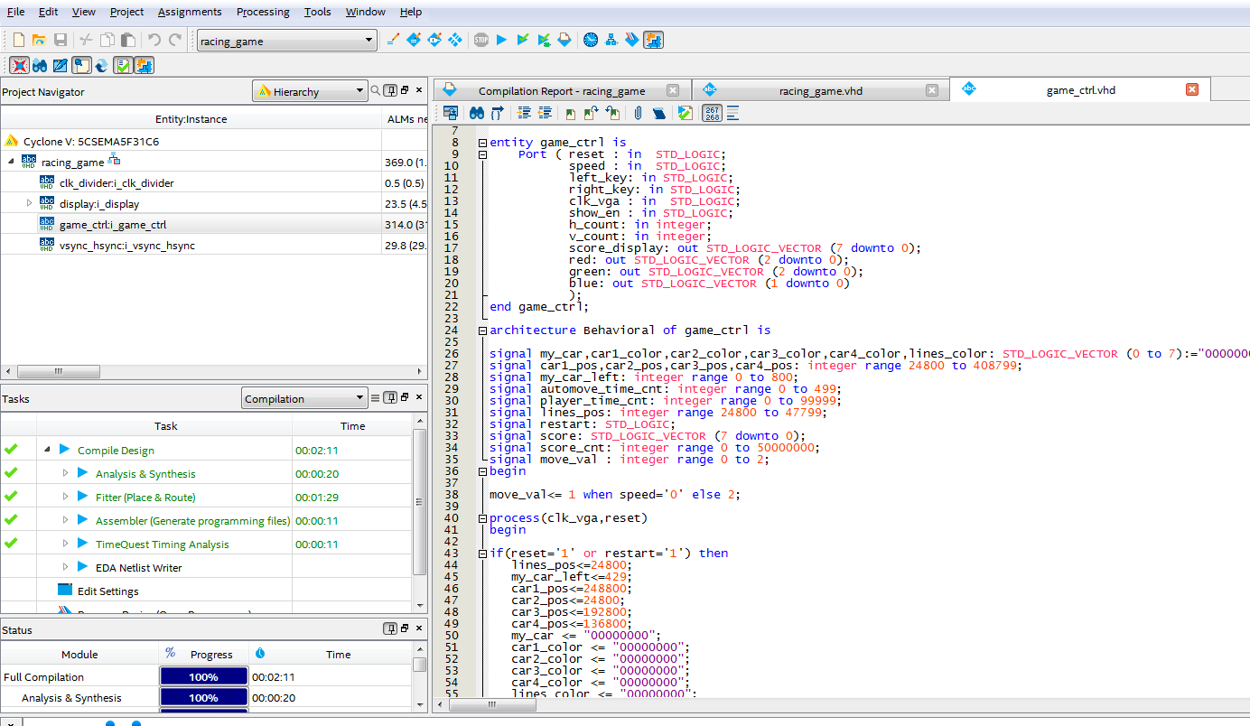 名称:赛车游戏设计VHDL代码Quartus? DE1-SOC开发板