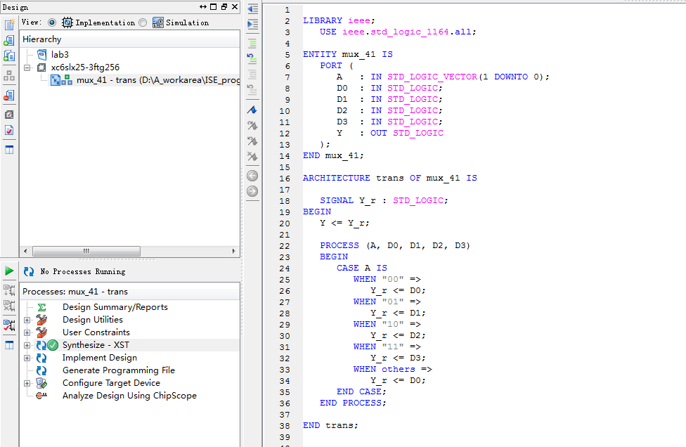 名称:4选1数据选择器设计VHD代码ISE仿真