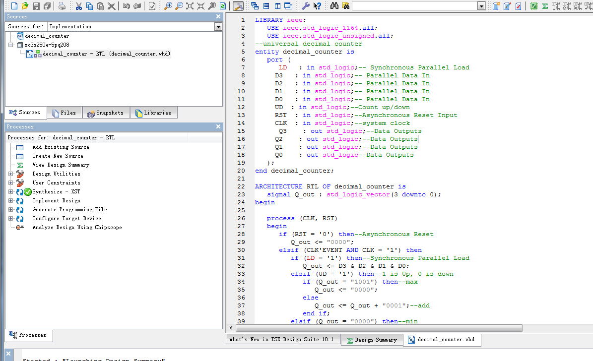 名称:异步清零同步置数计数器设计VHDL代码ISE仿真
