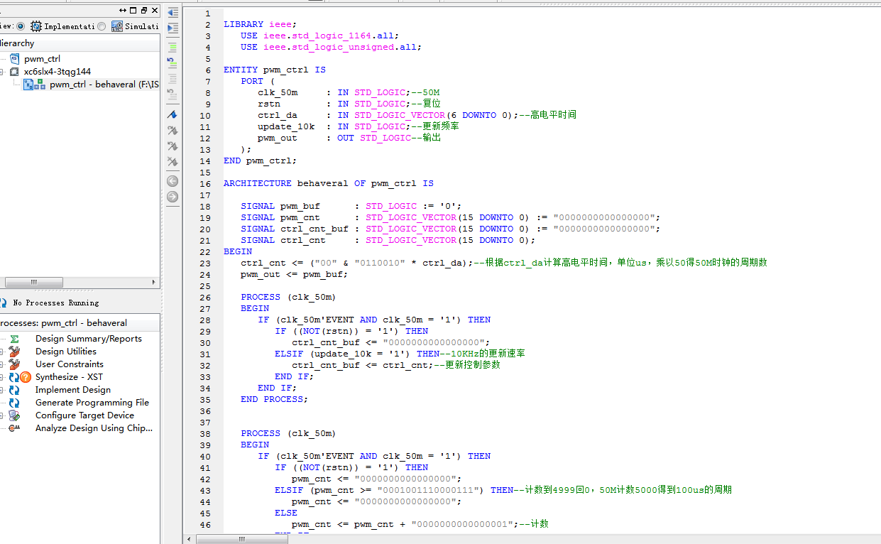 名称:PWM波生成器设计VHDL代码ISE仿真