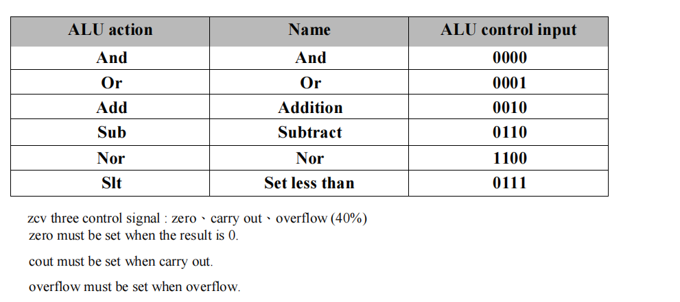这个实验室的目标是实现一个32位的ALU(算术逻辑单元)。ALU是CPU的基本计算组件。它的操作包括和、或、加、减法等。这个家庭作业将帮助您理解CPU架构。测试台的功能是自动读取输入数据,输出错误数据。
