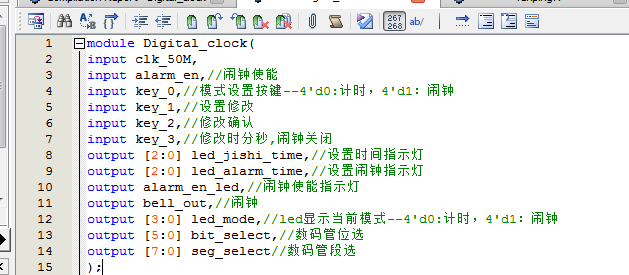 output?[3:0]?led_mode,//led显示当前模式--4'd0:计时,4'd1:闹钟