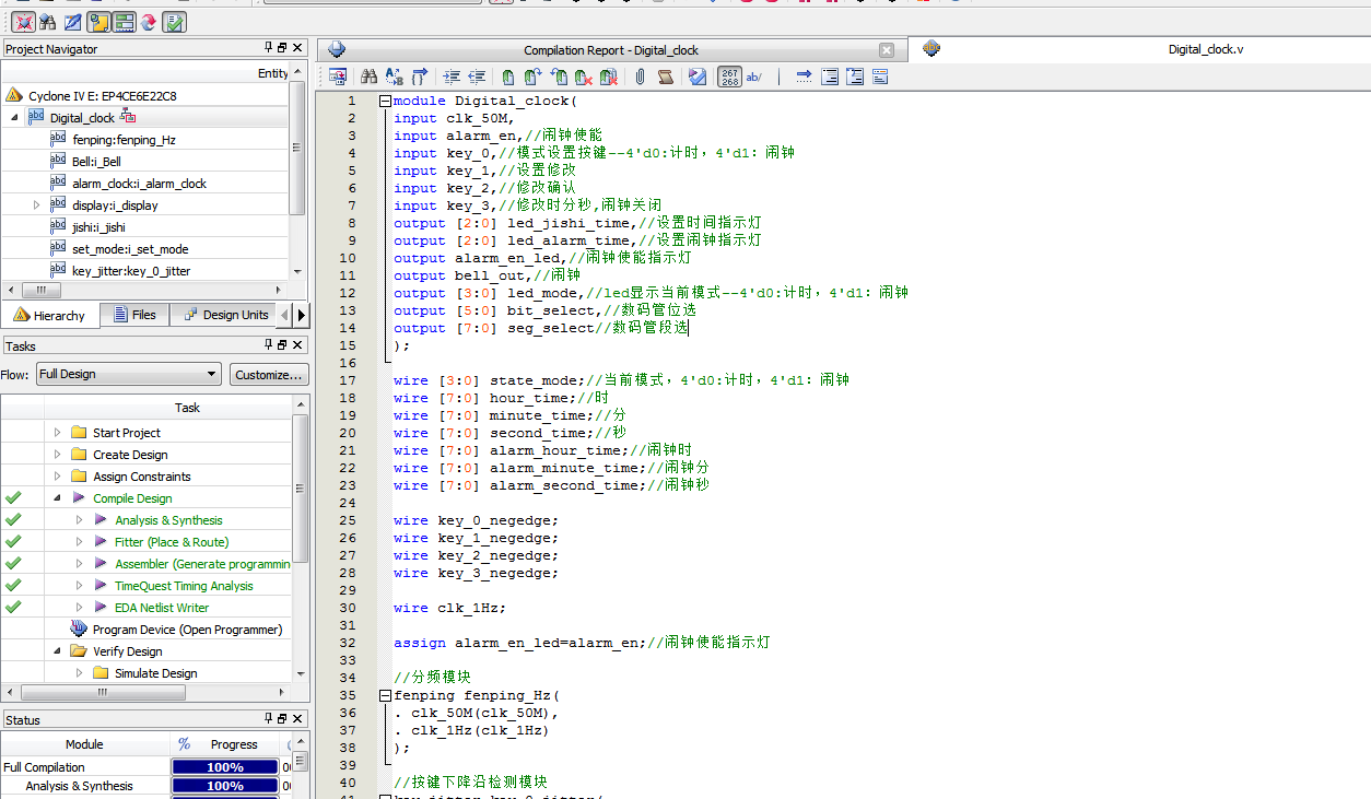 多功能数字钟设计Verilog代码Quartus MFB-5实验箱