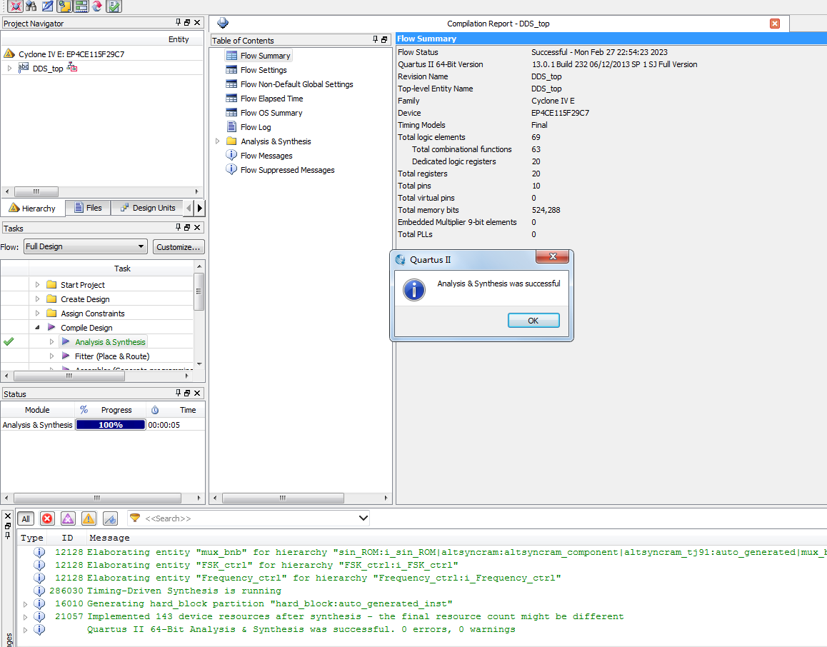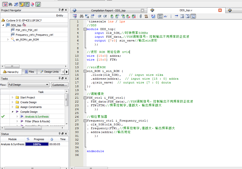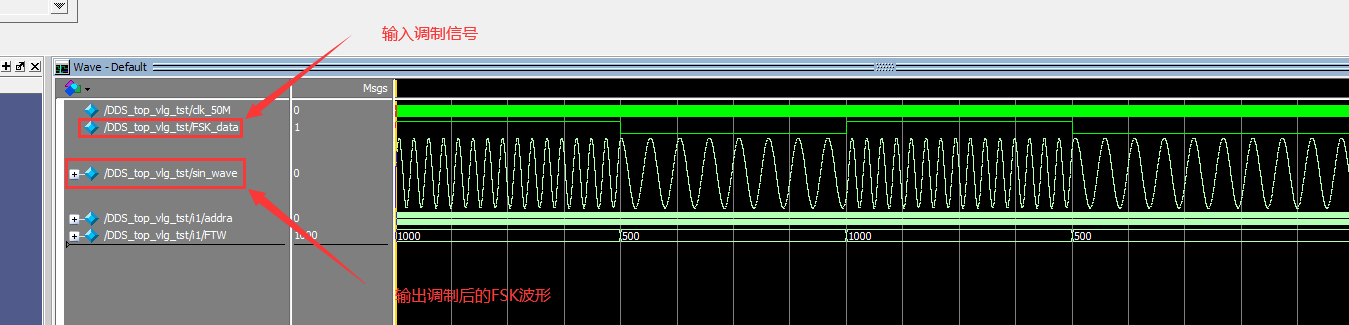 名称:基于DDS的FSK调制信号控制设计Verilog代码Quartus仿真