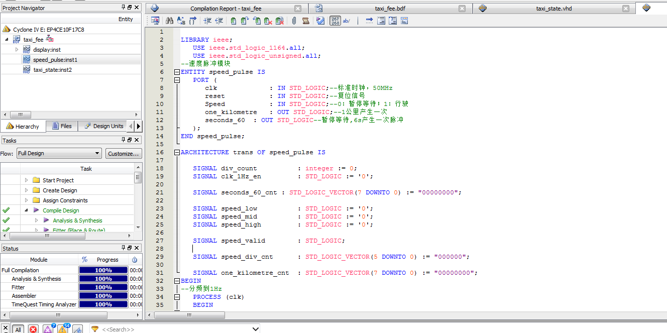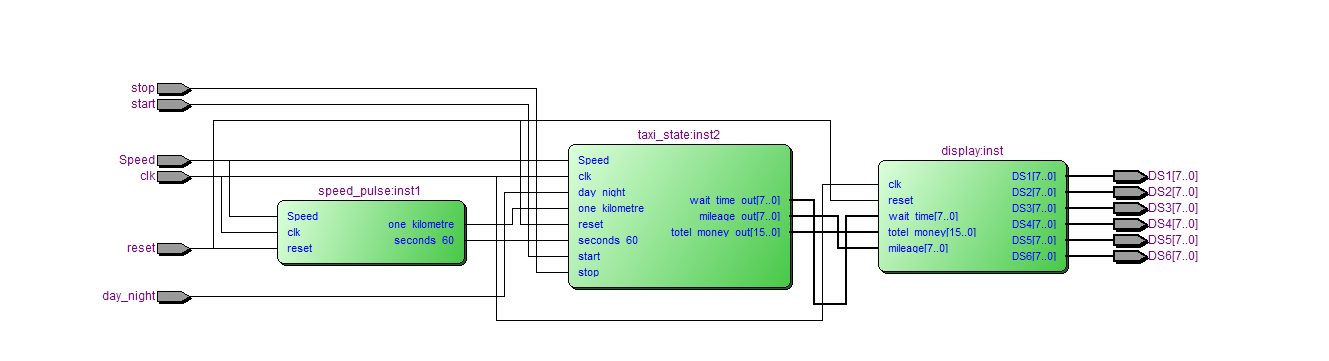 名称:出租车计费器区分白天晚上设计VHDL代码Quartus? EP4C实验箱
