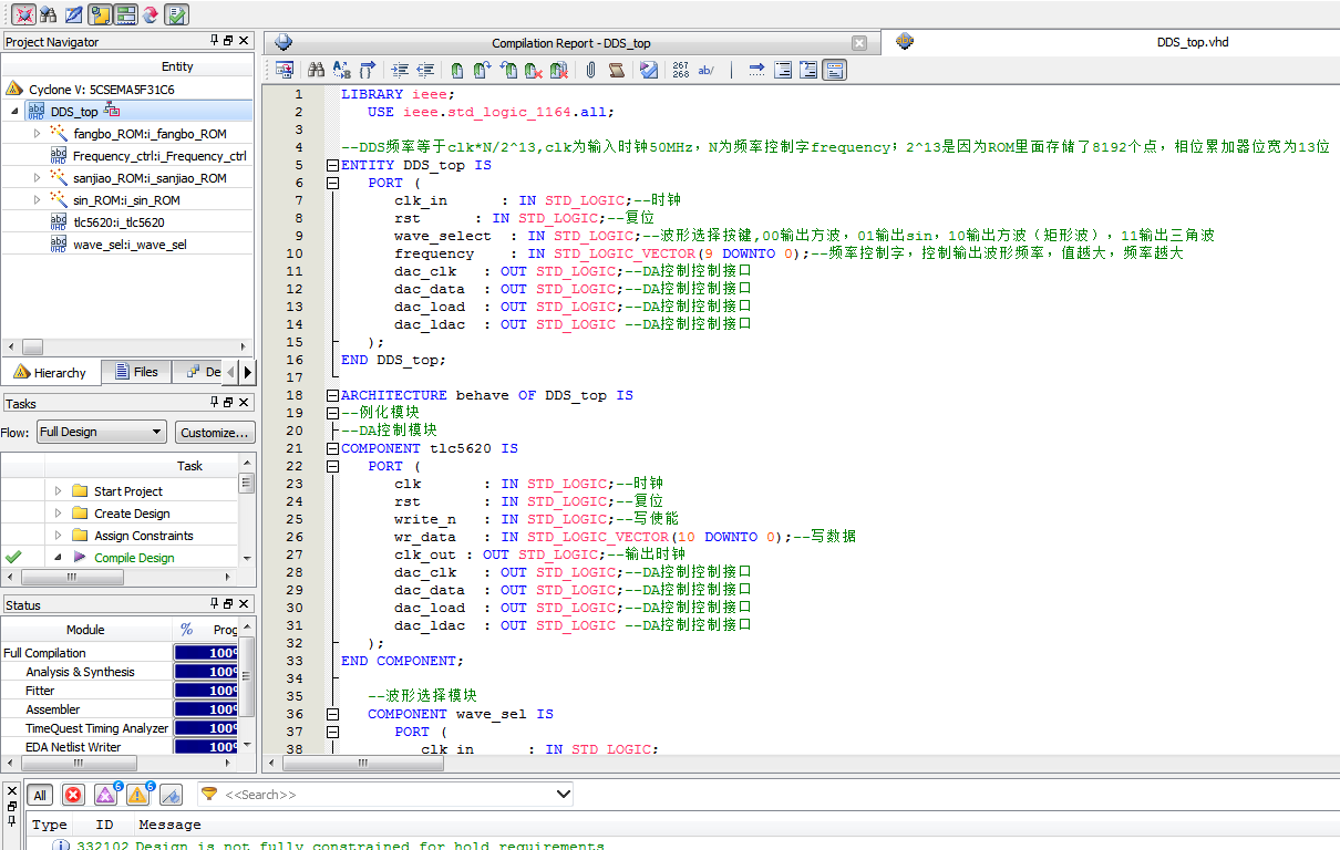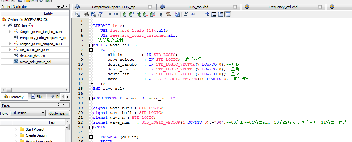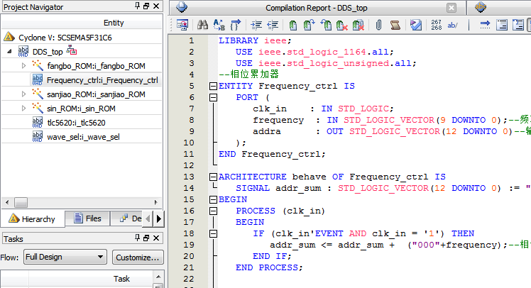 DDS波形发生器并通过DA芯片tlc5620输出波形设计VHDL代码DE1-SOC开发板