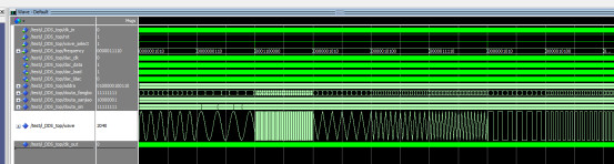 --DDS频率等于clk*N/2^13,clk为输入时钟50MHz,N为频率控制字frequency;2^13是因为ROM里面存储了8192个点,相位累加器位宽为13位