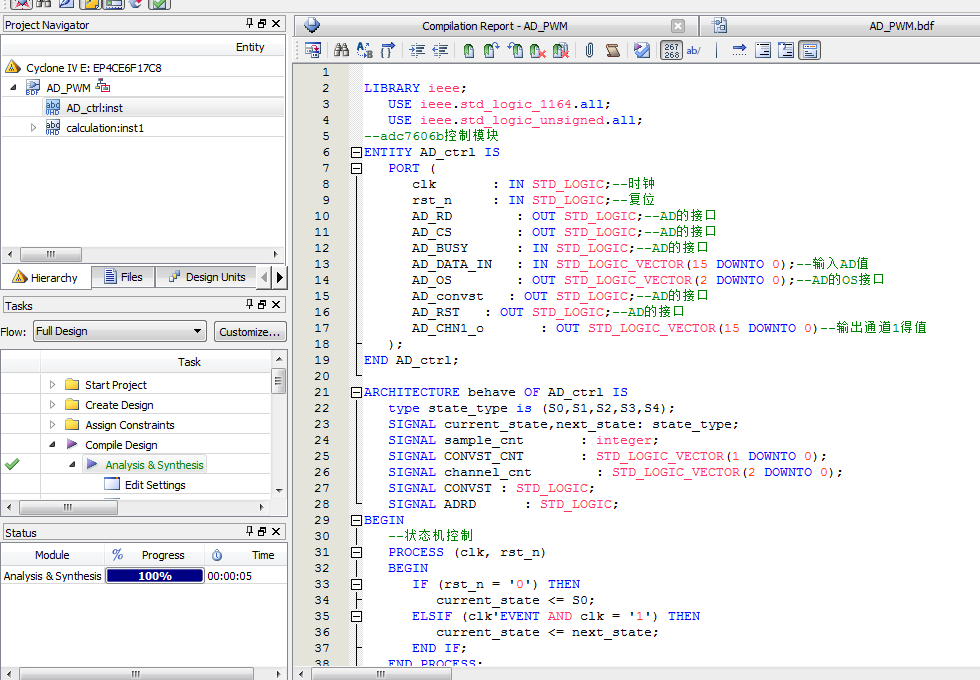名称:AD芯片AD7606b驱动设计VHDL代码Quartus仿真