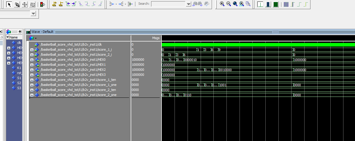 LIBRARY?ieee; USE?ieee.std_logic_1164.all;? LIBRARY?work; ENTITY?basketball_score?IS? PORT ( clk?:??IN??STD_LOGIC; K1?:??IN??STD_LOGIC; rst_n?:??IN??STD_LOGIC; S1?:??IN??STD_LOGIC; S2?:??IN??STD_LOGIC; S3?:??IN??STD_LOGIC; HEX0?:??OUT??STD_LOGIC_VECTOR(6?DOWNTO?0); HEX1?:??OUT??STD_LOGIC_VECTOR(6?DOWNTO?0); HEX2?:??OUT??STD_LOGIC_VECTOR(6?DOWNTO?0); HEX3?:??OUT??STD_LOGIC_VECTOR(6?DOWNTO?0) ); END?basketball_score; ARCHITECTURE?bdf_type?OF?basketball_score?IS? COMPONENT?score PORT(clk?:?IN?STD_LOGIC; ?K1?:?IN?STD_LOGIC; ?rst_n?:?IN?STD_LOGIC; ?S1?:?IN?STD_LOGIC; ?S2?:?IN?STD_LOGIC; ?S3?:?IN?STD_LOGIC; ?score_1_o?:?OUT?STD_LOGIC_VECTOR(7?DOWNTO?0); ?score_2_o?:?OUT?STD_LOGIC_VECTOR(7?DOWNTO?0) ); END?COMPONENT;
