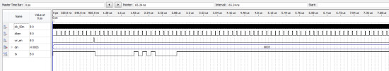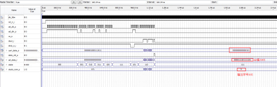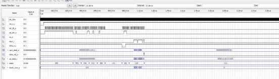 LIBRARY?ieee; ???USE?ieee.std_logic_1164.all; ???USE?ieee.std_logic_unsigned.all; USE?ieee.std_logic_arith.all; --AD7705时序控制模块 ENTITY?AD7705?IS ???PORT?( ??????clk_50m?????:?IN?STD_LOGIC;--时钟 ??????rst_n_i?????:?IN?STD_LOGIC;--系统复位信号,低有效 ??????drdy_n_i???:?IN?STD_LOGIC;--AD7705--pin ??????dout_i?????:?IN?STD_LOGIC;--AD7705--pin ??????cs_o???????:?OUT?STD_LOGIC;--AD7705--pin ??????ad_clk_o??????:?OUT?STD_LOGIC;--AD7705--pin ??????ad_din_o??????:?OUT?STD_LOGIC;--AD7705--pin ??data_vld_o??????:?OUT?STD_LOGIC;--AD有效 ??uart_data_o???:?OUT?STD_LOGIC_VECTOR(15?DOWNTO?0)--输出AD数据 ???); END?AD7705; ARCHITECTURE?RTL?OF?AD7705?IS ???--定义状态 ???SIGNAL?state?:?STD_LOGIC_VECTOR(2?DOWNTO?0)?:=?"000"; ???CONSTANT?S_RST?:?STD_LOGIC_VECTOR(2?DOWNTO?0)?:=?"000";--reset ???CONSTANT?S_CMT_CLK?:?STD_LOGIC_VECTOR(2?DOWNTO?0)?:=?"001";--write?8'h20 ???CONSTANT?S_CLK?:?STD_LOGIC_VECTOR(2?DOWNTO?0)?:=?"010";--write?8'h03 ???CONSTANT?S_CMT_SET?:?STD_LOGIC_VECTOR(2?DOWNTO?0)?:=?"011";--write?8'h10 ???CONSTANT?S_SET?:?STD_LOGIC_VECTOR(2?DOWNTO?0)?:=?"100";--write?8'h40 ???CONSTANT?S_CMT_DATA?:?STD_LOGIC_VECTOR(2?DOWNTO?0)?:=?"101";--write?8'h38,read?通道1 ???CONSTANT?S_DATA?:?STD_LOGIC_VECTOR(2?DOWNTO?0)?:=?"110";--读数AD ???CONSTANT?S_WAIT?:?STD_LOGIC_VECTOR(2?DOWNTO?0)?:=?"111";--等待DRDY ???--定义常数 ???CONSTANT?cmt_clk_r??:?STD_LOGIC_VECTOR(7?DOWNTO?0)?:=?x"20"; ???CONSTANT?clk_r??????:?STD_LOGIC_VECTOR(7?DOWNTO?0)?:=?x"03"; ???CONSTANT?cmt_set_r??:?STD_LOGIC_VECTOR(7?DOWNTO?0)?:=?x"10"; ???CONSTANT?set_r??????:?STD_LOGIC_VECTOR(7?DOWNTO?0)?:=?x"40"; ???CONSTANT?smt_data_r?:?STD_LOGIC_VECTOR(7?DOWNTO?0)?:=?x"38";? ???--定义信号 ???SIGNAL?clk_cnt_r??????:?integer?:=?0; ???SIGNAL?study_num_s??:?INTEGER?:=?0;?--计算结果 ??? ???SIGNAL?div_clk_r?????:?STD_LOGIC?:=?'0'; ???SIGNAL?div_clk_cnt_r?:?integer?:=?0; ???SIGNAL?clk_vld?????????:?STD_LOGIC?:=?'0'; ???SIGNAL?ad_in_r?????:?STD_LOGIC?:=?'0'; ???SIGNAL?div_clk_rr?:?STD_LOGIC?:=?'0'; ???SIGNAL?div_clk_n_s:?STD_LOGIC; ???SIGNAL?div_clk_p_s:?STD_LOGIC;?? ???SIGNAL?ad_data_r??:?STD_LOGIC_VECTOR(15?DOWNTO?0)?:=?"0000000000000000"; ???SIGNAL?ad_data_int??:?INTEGER?:=?0; BEGIN???? ???--分频计数 ???PROCESS?(clk_50m) ???BEGIN ??????IF?(clk_50m'EVENT?AND?clk_50m?=?'1')?THEN ?????????IF?(rst_n_i?=?'0')?THEN ????????????div_clk_cnt_r?<=?0; div_clk_rr<='0'; ?????????ELSIF?(div_clk_cnt_r?=?9)?THEN--分频比为10 ????????????div_clk_cnt_r?<=?0; ?????????ELSE ????????????div_clk_cnt_r?<=?div_clk_cnt_r?+?1; ?????????END?IF; ? ?????????IF?(div_clk_cnt_r?>=?5)?THEN ????????????div_clk_r?<=?'1';--分频为5MHz ?????????ELSE ????????????div_clk_r?<=?'0'; ?????????END?IF;
