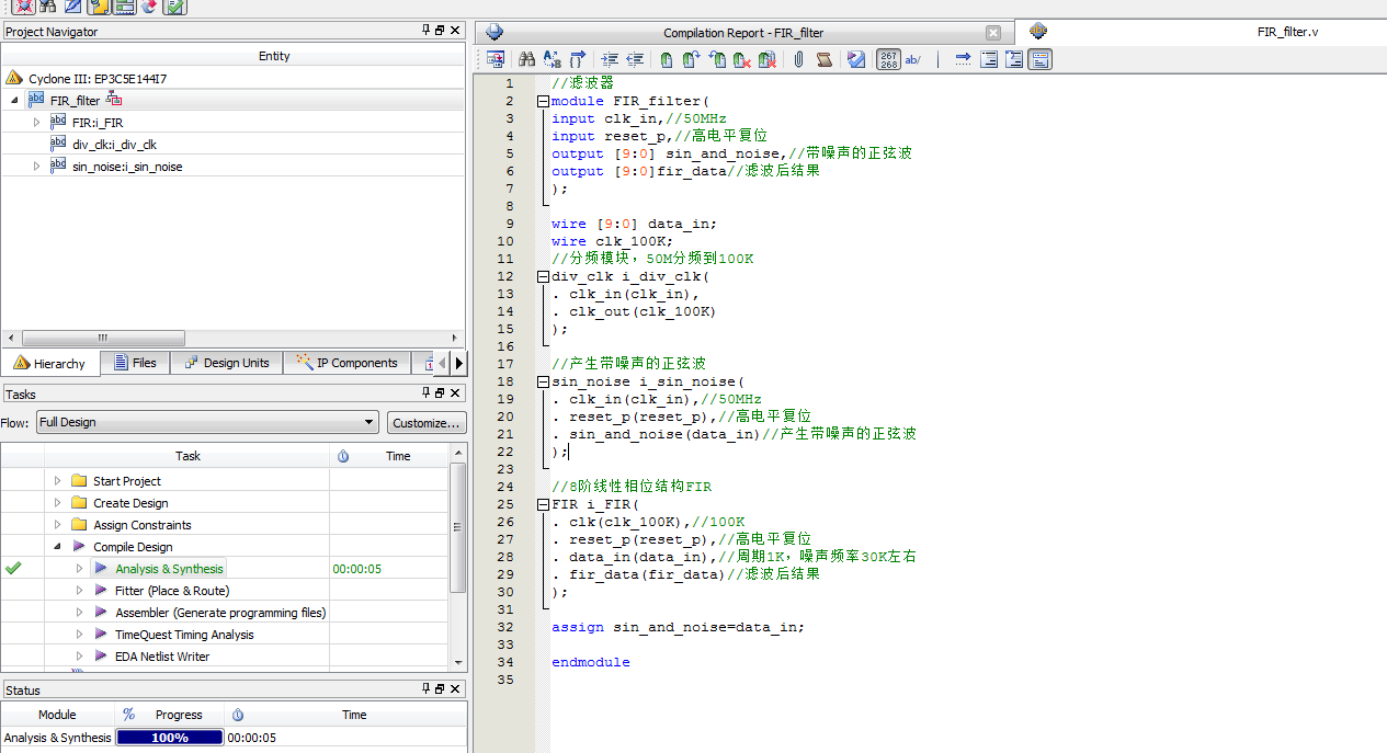 名称:FIR滤波器电路设计Verilog代码Quartus仿真