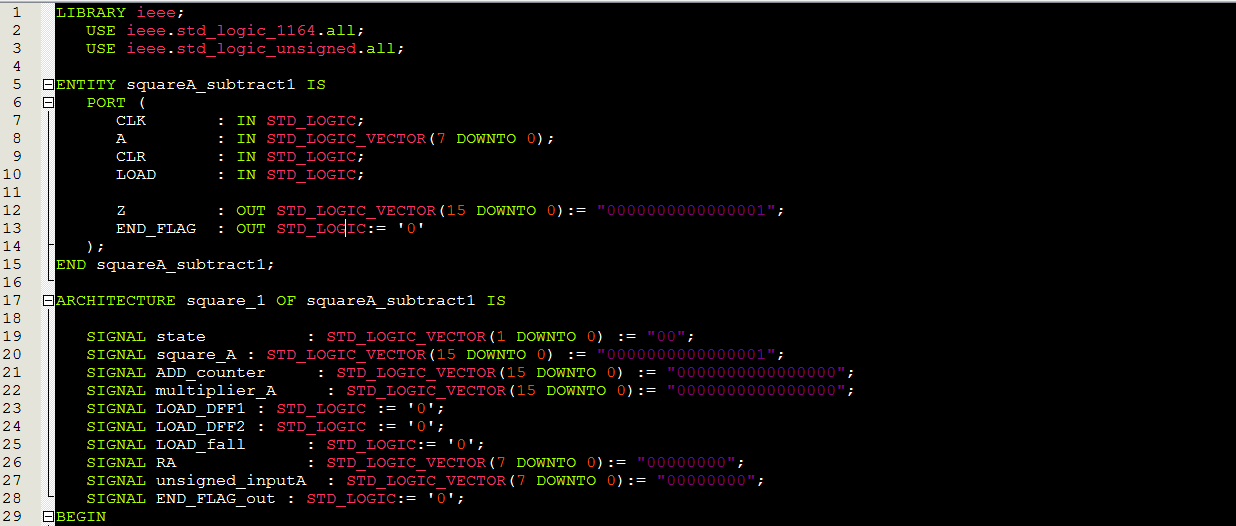 名称:A平方减1算法实现设计VHDL代码Quartus仿真
