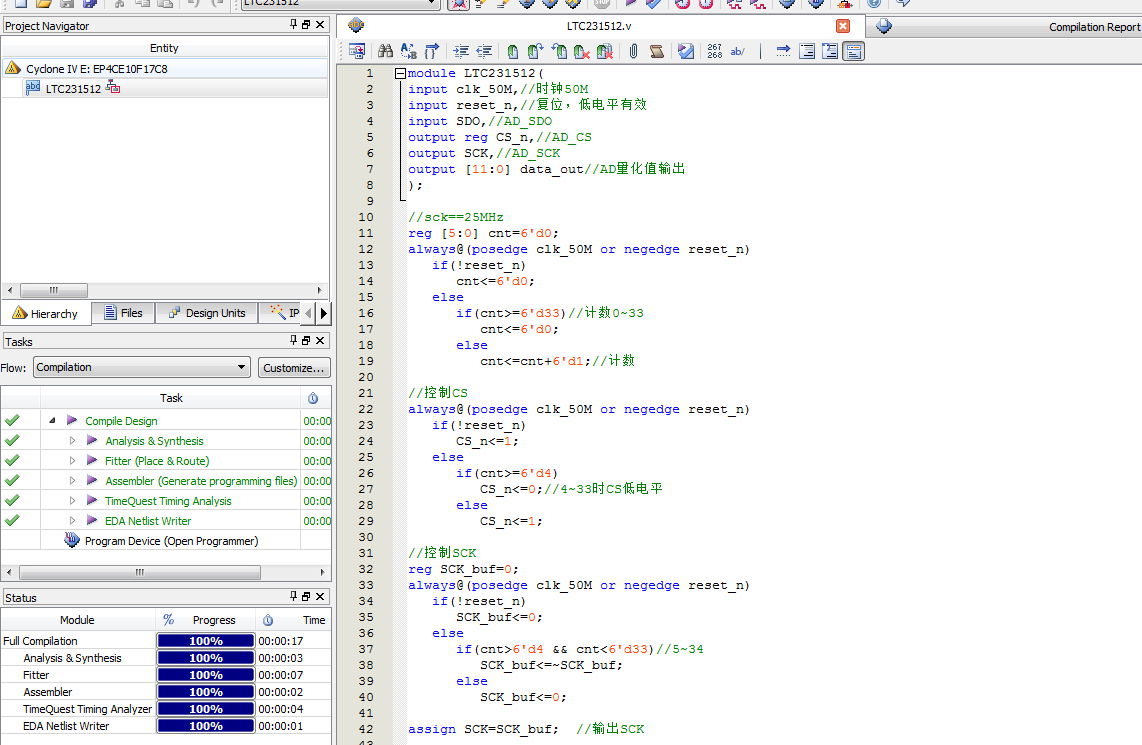 名称:AD芯片LTC231512驱动代码设计Verilog代码Quartus仿真