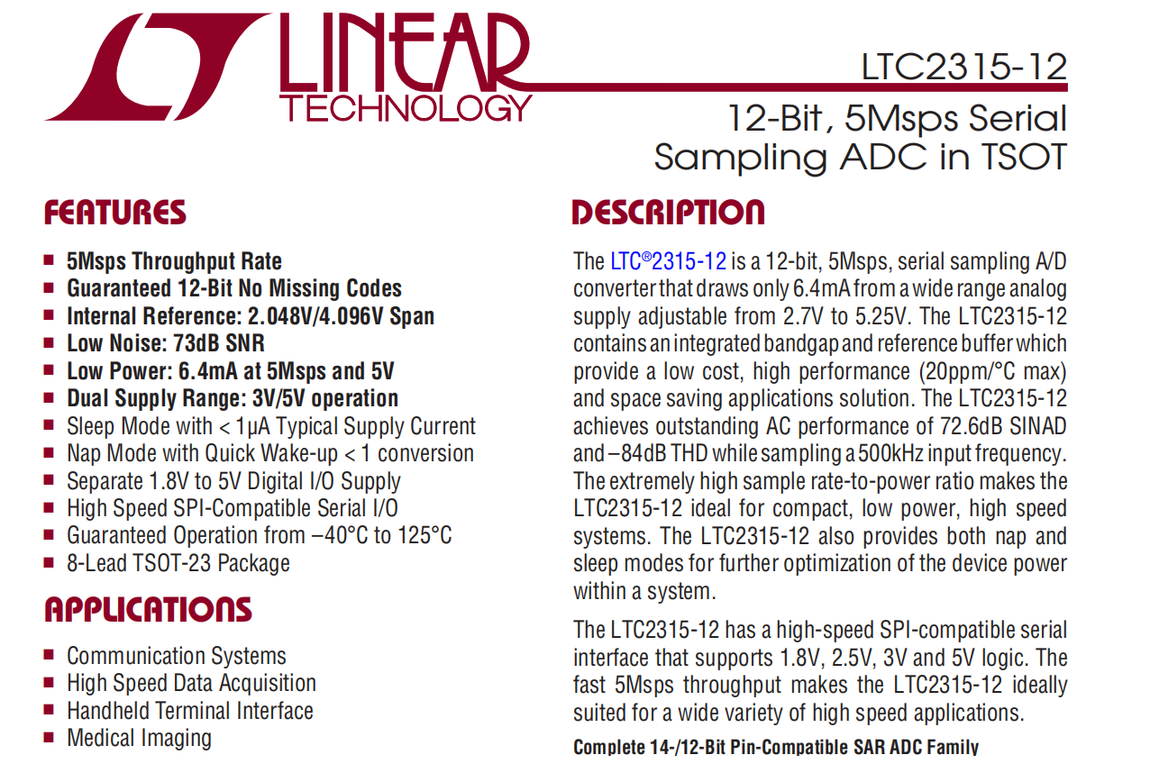 LTC231512是12bit,最大5M采样率的串行ADC芯片