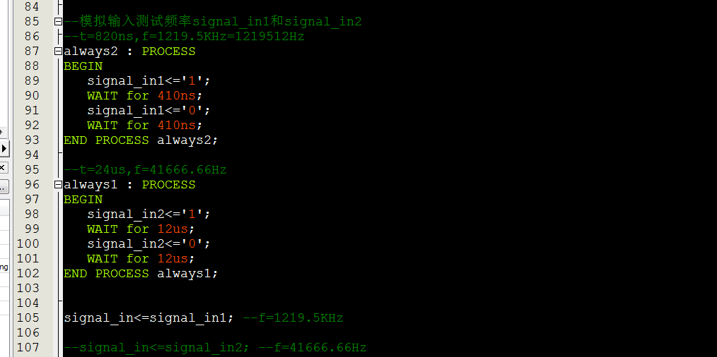 Testbench模拟2种不同档位的频率输入,频率1=1219KHz,频率2=41666.7Hz