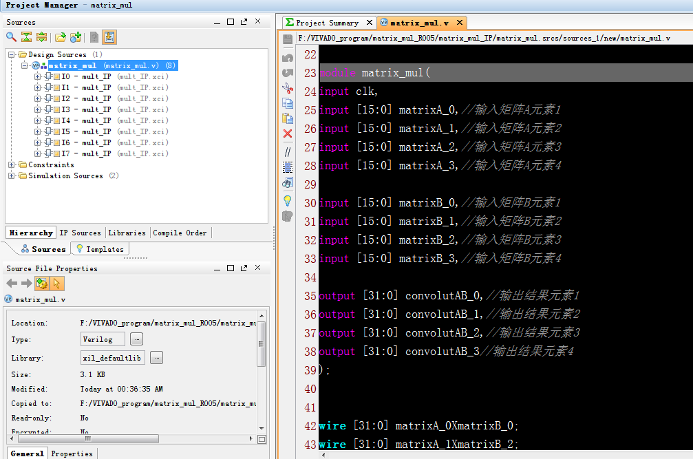 名称:矩阵乘法器设计Verilog代码VIVADO仿真