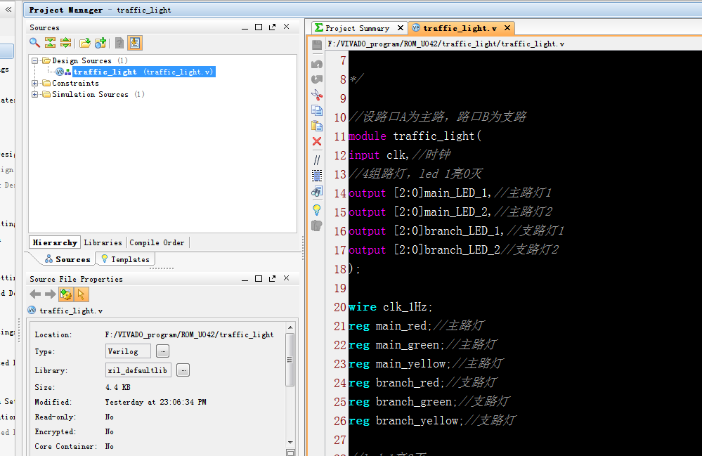 名称:十字路口交通灯设计Verilog代码VIVADO仿真