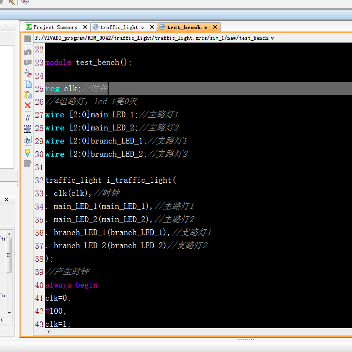 测试仿真:testbench包含1个完整交通控制周期过程。