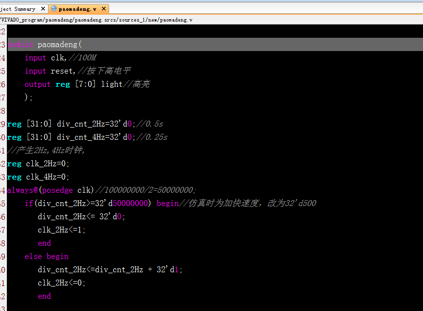 流水灯控制设计Verilog代码VIVADO仿真