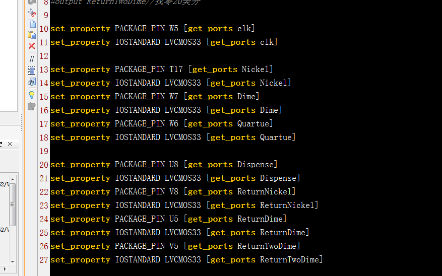 假设在一个周期投一个硬币。输出是Dispense ReturnNickel、ReturnDime、ReturnTwoDime。