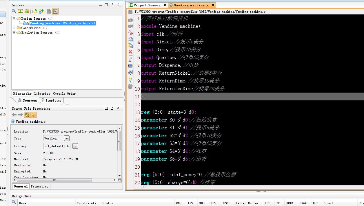 名称:饮料自动售货机设计Verilog代码VIVADO仿真