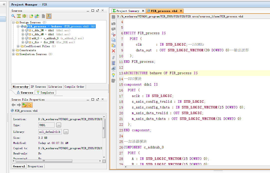 名称:基于FPGA的FIR滤波器设计设计VHDL代码VIVADO仿真