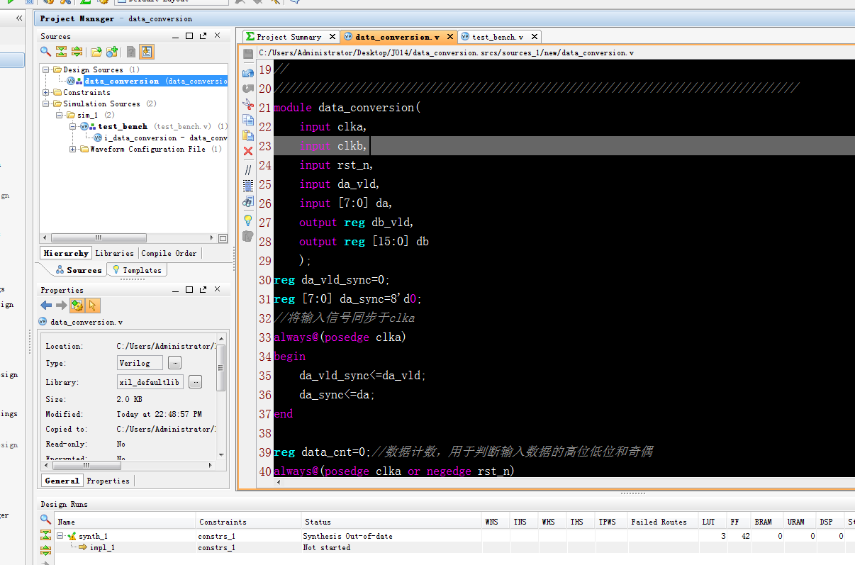 名称:基于FPGA的数据位宽转换器设计Verilog代码VIVADO仿真