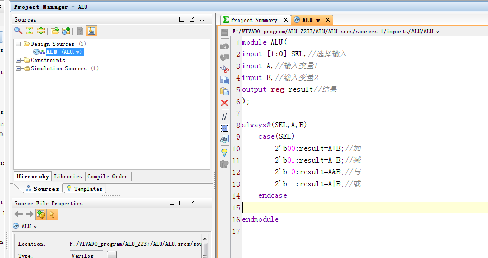 名称:基于FPGA的算数逻辑单元ALU设计Verilog代码VIVADO仿真