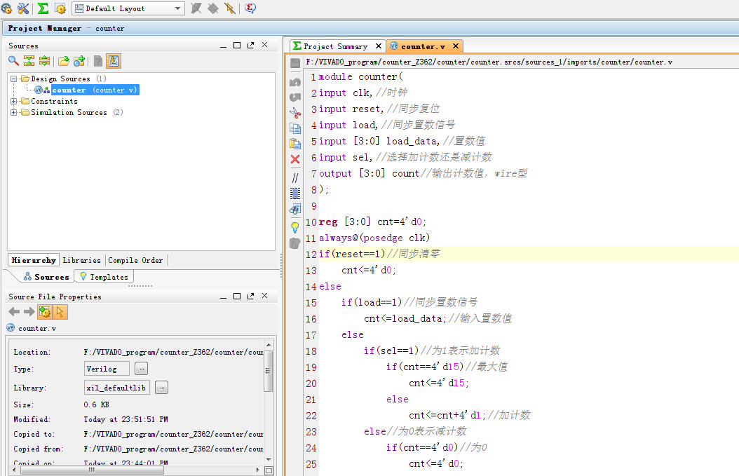名称:基于FPGA的同步清零置数加减法计数器设计Verilog代码VIVADO仿真