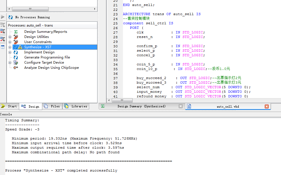 总体设计调试,完成地铁售票机设计顶层原理,根据所选芯片型号,定义LOC,进行设计实现调试