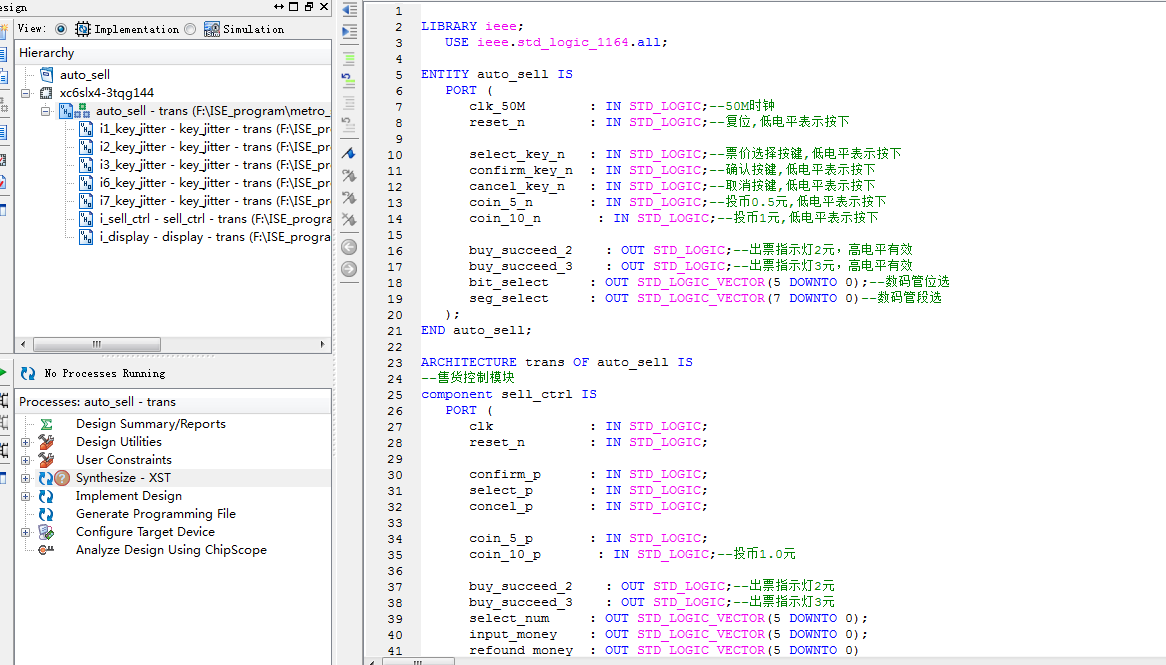名称:基于FPGA的地铁售票机设计VHDL代码ISE仿真