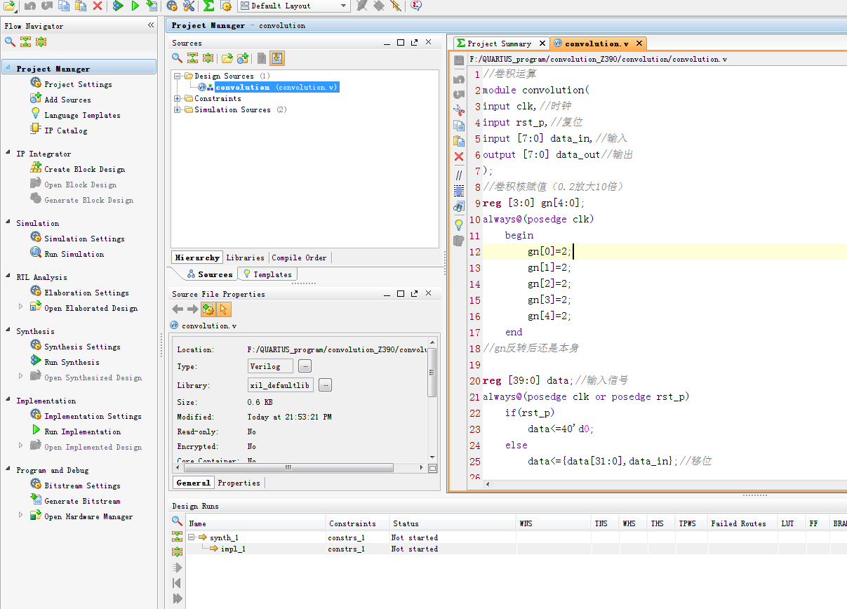 名称:基于FPGA的8位卷积运算设计Verilog代码Quartus仿真