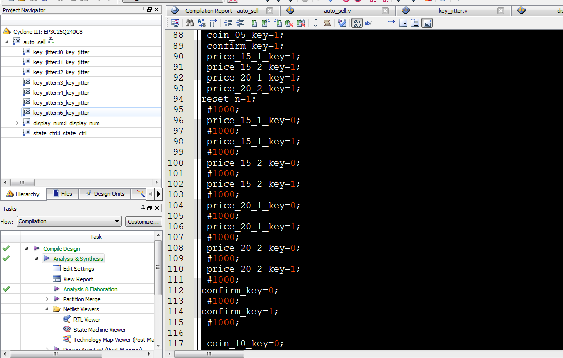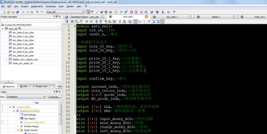 名称:基于FPGA的自动售货机控制系统Verilog代码Quartus仿真