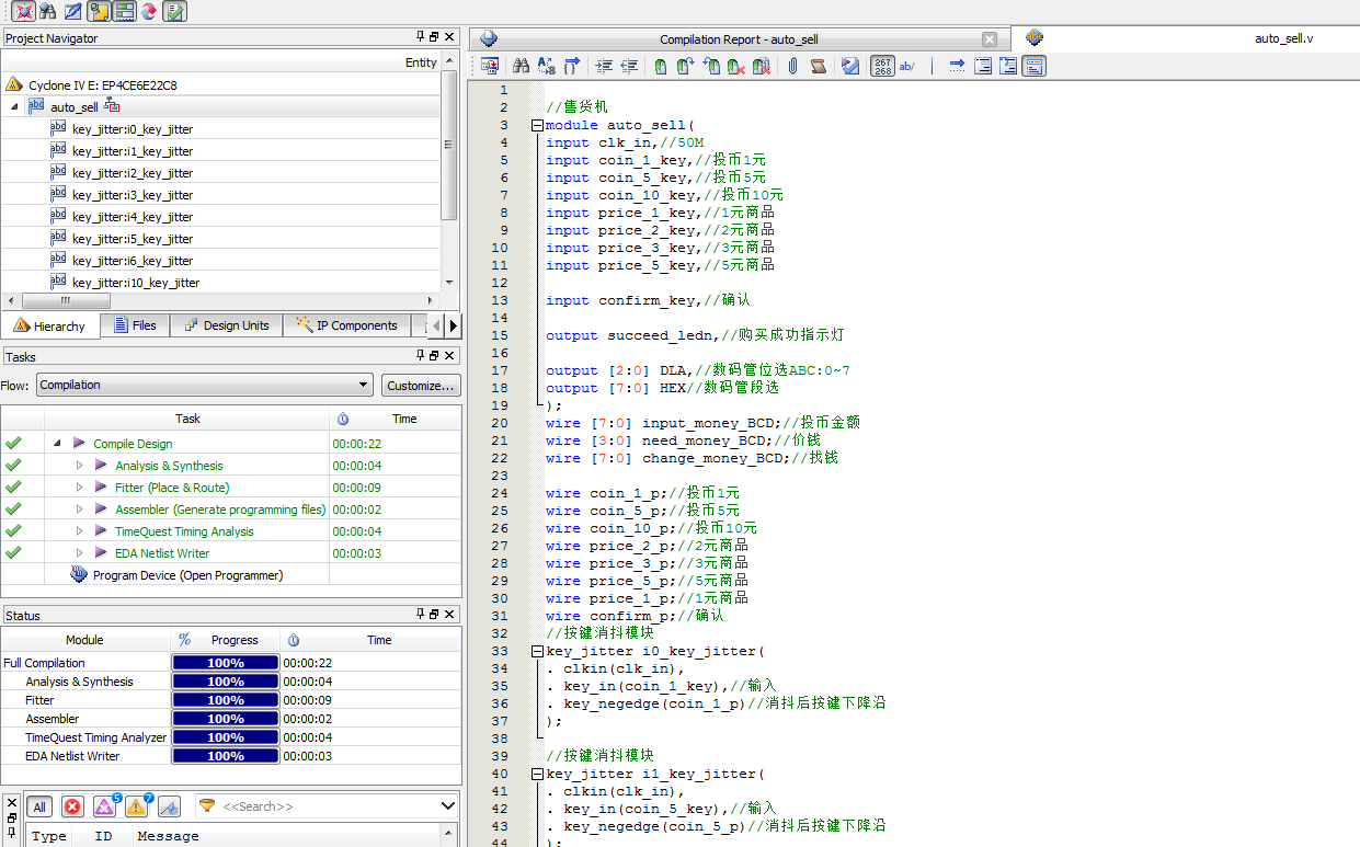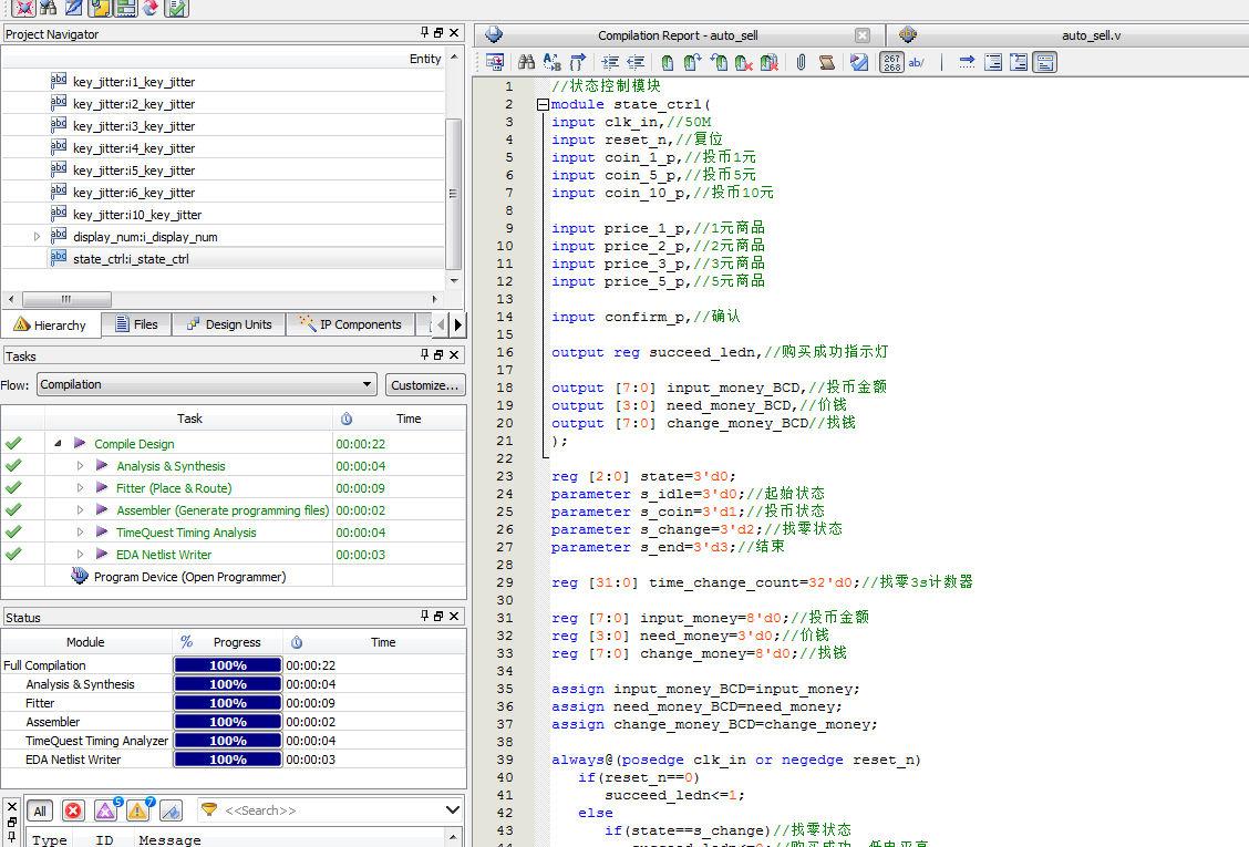 名称:基于FPGA的自动售货机Verilog代码Quartus仿真