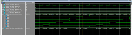 在EDA软件中完成数字电子钟的源代码设计,并进行仿真,仿真结果要能够体现出时、分、秒各自的跳变过程,并且能够给出整点报时控制信号的变化过程。