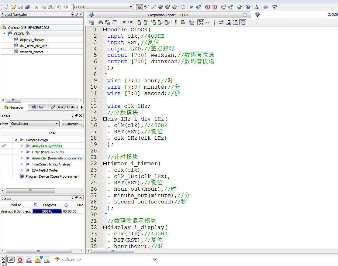名称:基于FPGA的数字电子钟设计Verilog代码Quartus仿真