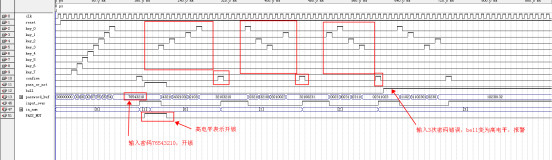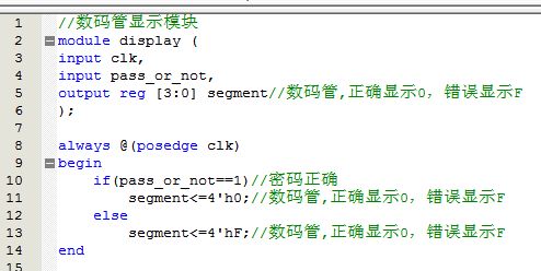 3.当输入的数字符合电路中设定的数字时(和密码对)在EDA实训仪上用一只八段数码管显示0表示输入整砂正确,如果输入的密码是错误的,则显示F;