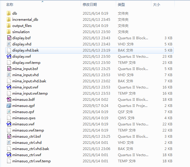名称:基于FPGA的电子密码锁VHDL代码Quartus仿真
